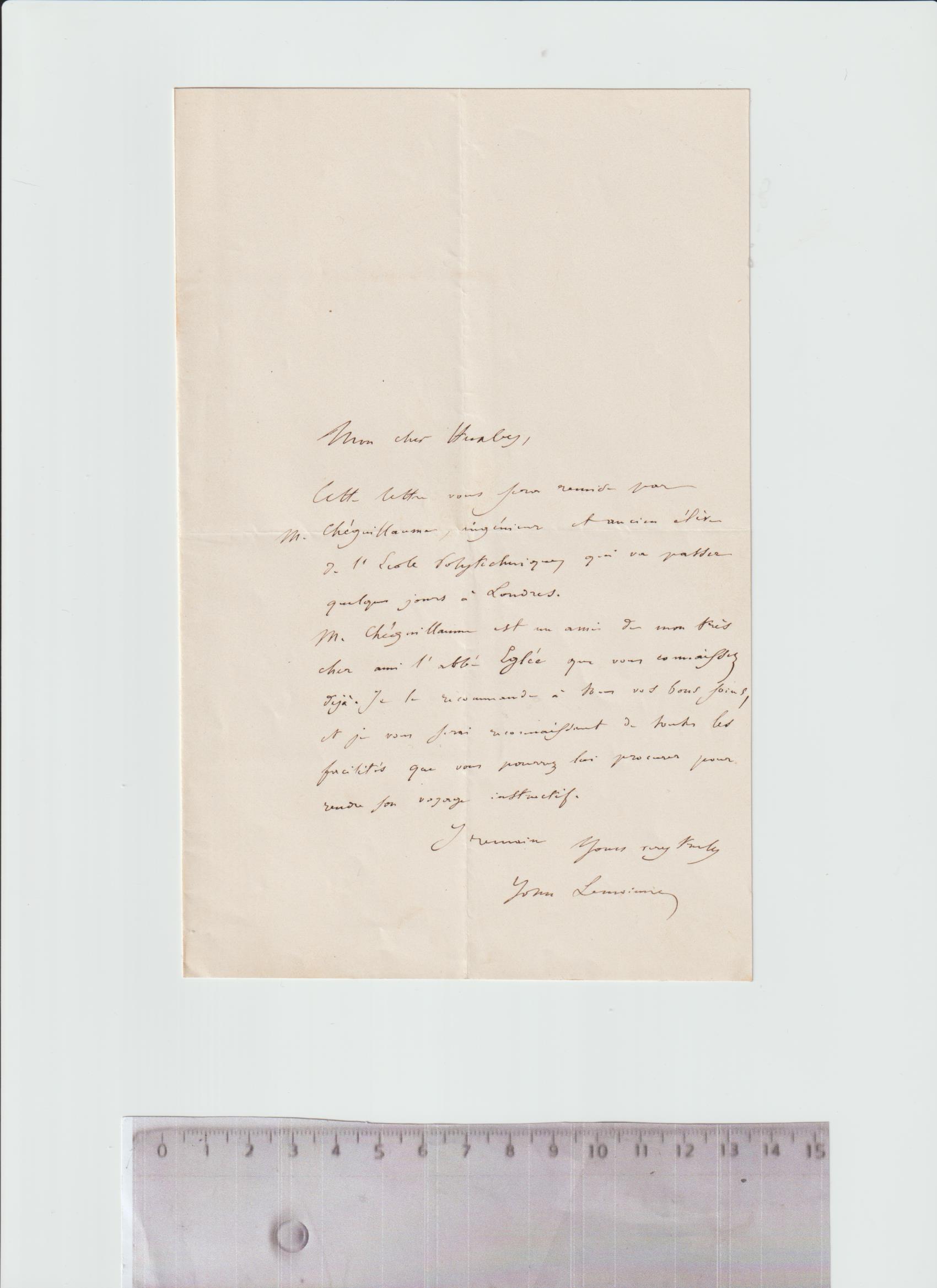 Afin de faciliter le travail d'identification, une règle a été placée aux côtés de chaque document numérisé, ce qui permet d'en évaluer les dimensions.