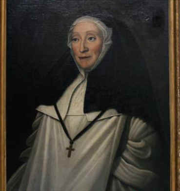Parmi les portraits que vous présentez, celui représentant une religieuse est susceptible de correspondre aux traits de Jeanne Juliard de Mondonville, supérieure et fondatrice de la Congrégation des Filles de l'Enfance, peint par François de Troy.