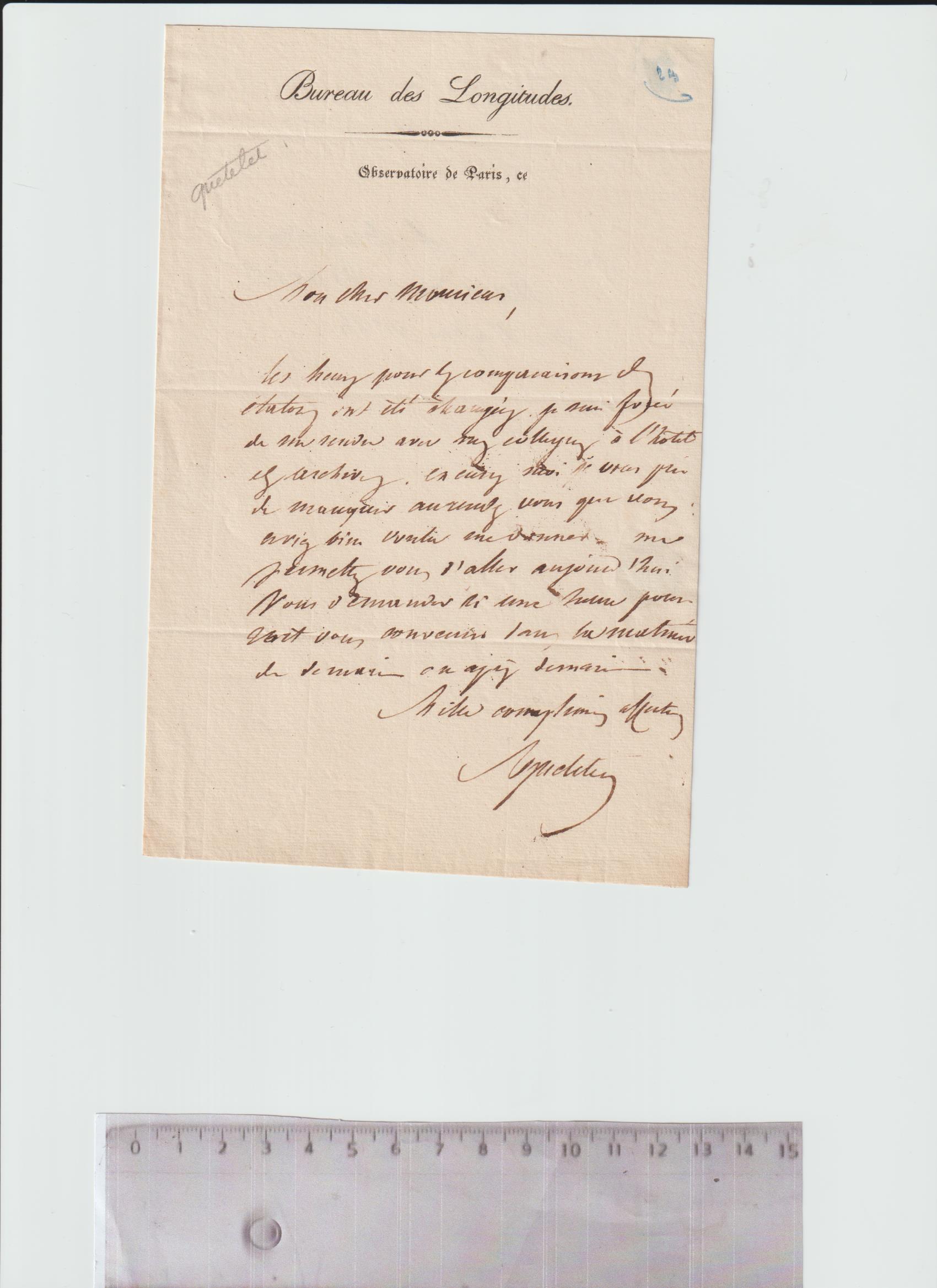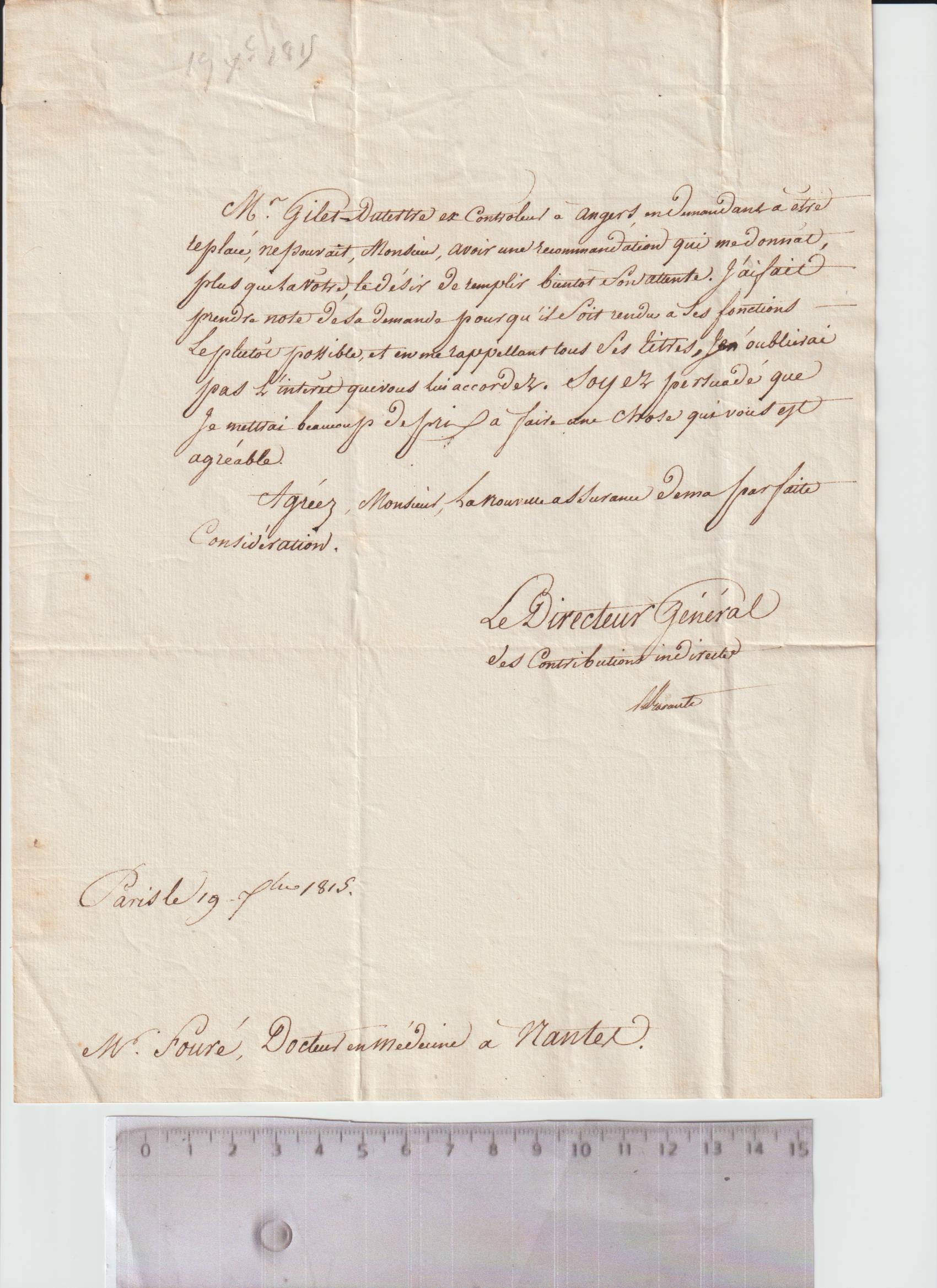 Afin de faciliter le travail d'identification, une règle a été placée aux côtés de chaque document numérisé, ce qui permet d'en évaluer les dimensions.