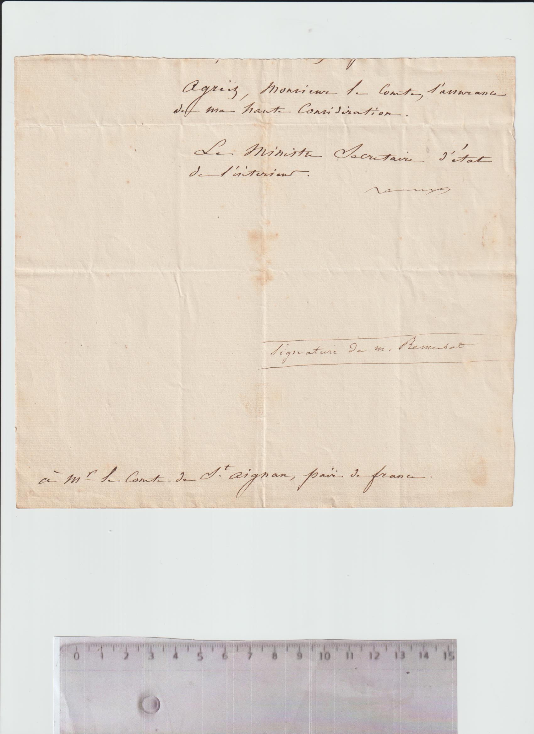 Exemplaire de signature, 1801. Provenance : Bibliothèque de Port-Royal